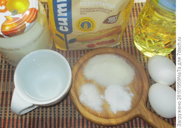 ИнгредиентыМука — 150-200 гМанка — 50 гКефир — 300 млВода теплая — 70 млЯйца — 2 шт.Растительное масло — 3...