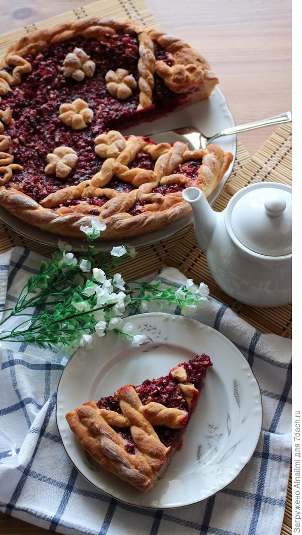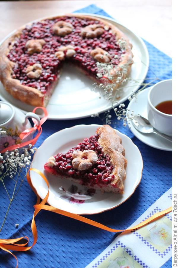 А это вариант моего пирога с брусникой, клюквой и грецким орехом — очень оригинальное сочетание кислого, сладкого и орехового вкуса. Орех придаёт отдельную пикантную нотку. Прекрасный пирог!