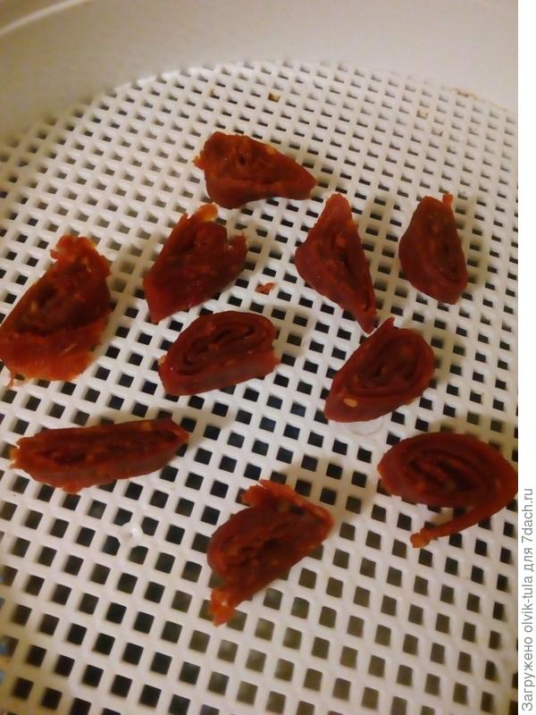 А ведь правда, если делают сладкие пастилки, почему бы не попробовать это с овощами и солью? Ну очень понравилась идея! Мне вот по вкусу морская капуста, что в тонких пластинах продаётся, вроде как для роллов, я её просто так жую, пока за компом работаю. Теперь можно кабачковую икру сушёную делать. Можно и любую зелень, наверное, так заготавливать… Жидкость только сливать. Или секрет в загустевании томата?