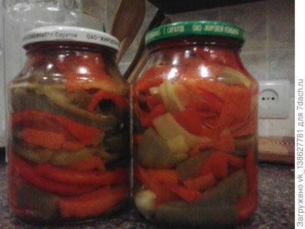 Режем перец кольцами или языками. Ставим кипятить маринад, как только он закипел, кладем туда приготовленные перцы. Доводим до кипения и варим 5 минут. Раскладываем по банкам, объемом 0,5 и стерилизуем 10 минут. Закатываем крышками, переворачиваем вверх дном и накрываем. Как только остынут, ставим в подвал. Приятного аппетита.