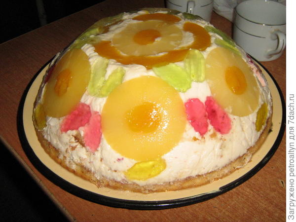 Мы однажды для выездного пикника для большой компании родственников, с дочей сделали большой тортик на основе этого рецепта.