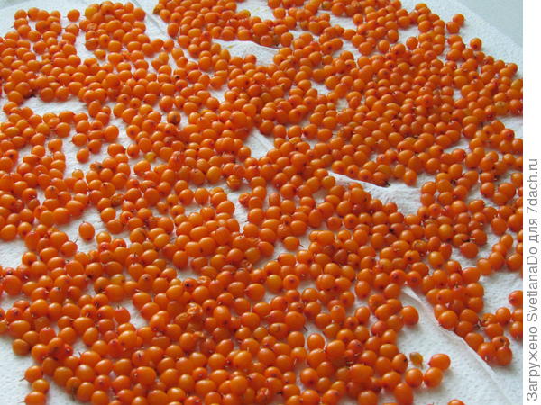 Ягоды облепихи помять вручную. Не стоит это делать блендером, поскольку ножи от сока облепихи портятся, а ягоды от металла окисляются и теряют часть витаминов.