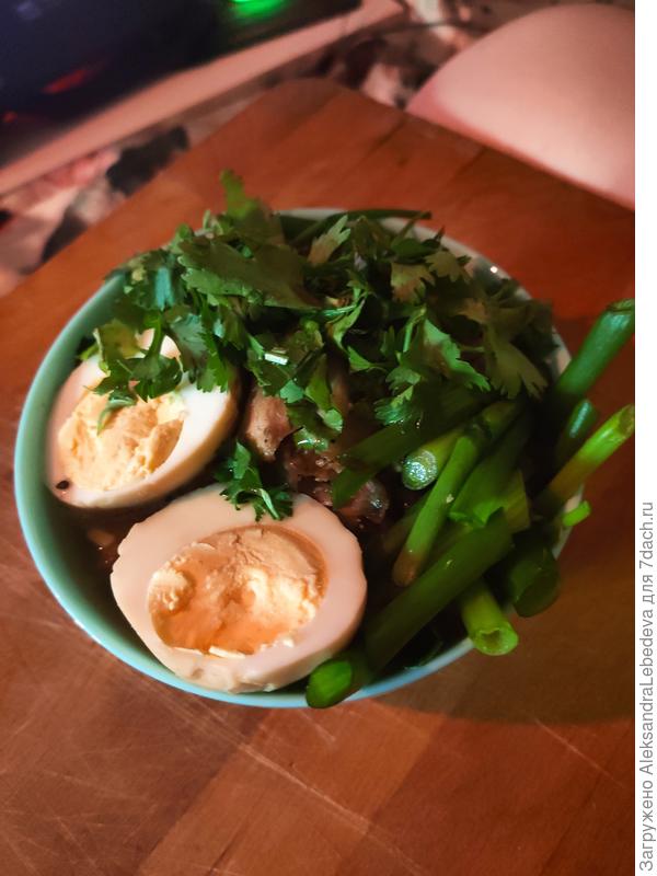 Но вот бульон точно нужно досаливать в какой-то момент, по рецепту вышло совсем не солёное, мясо и яйца не скрашивают)