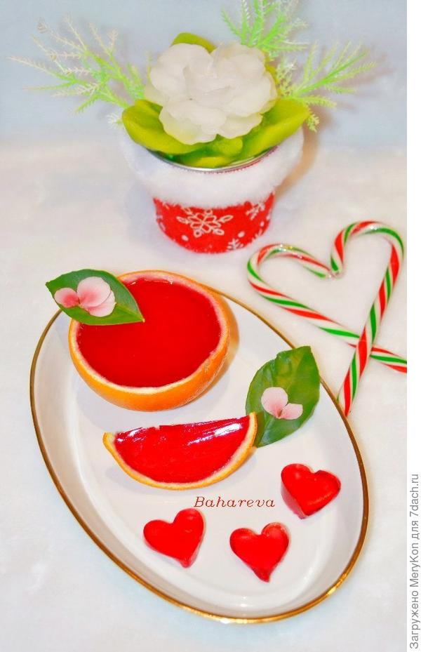 При помощи агар-агара желе «встает» очень быстро, зависит от емкости формы. В апельсиновых формах хватило 10 минут. Дынные десерты рискнула разрезать только через час.