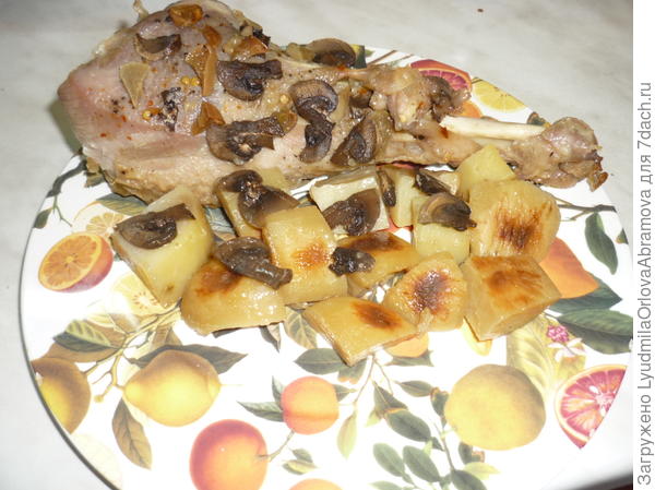 Голень индейки с картофелем и грибами, запеченная в фольге