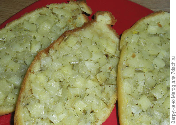 Смазываем весь пирожок куском сливочного масла, затем разрезаем его на две части — лодочки, в обе части кладем, не жалея, сливочное масло.