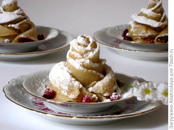 2. Можно свернуть блинчики розочкой и подавать с вареньем.