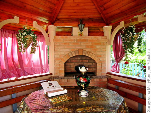 А беседка да, зовет и не только на чай, мы частенько там от невинных радостей переходим к винным