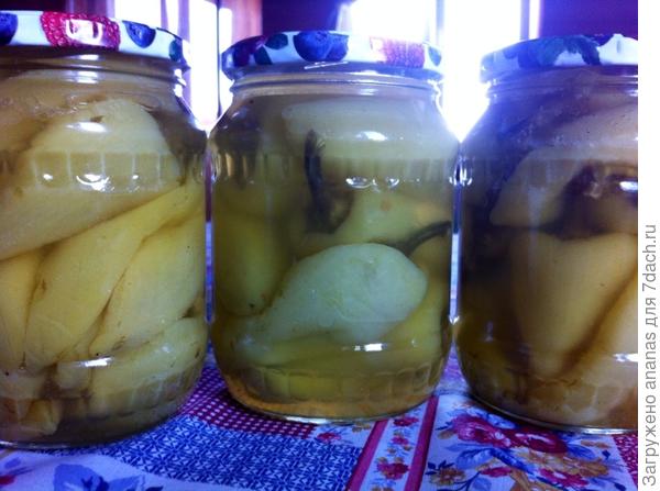 потом на широкое блюдо и он окончательно изменил цвет, ну а потом в банки — это про целенький с дырочками вокруг плодоножки))