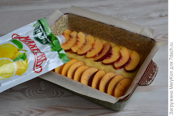 Пространство между дольками нектарина нужно заполнить щедрым слоем лимонного джема, усиливающего аромат пирога.
