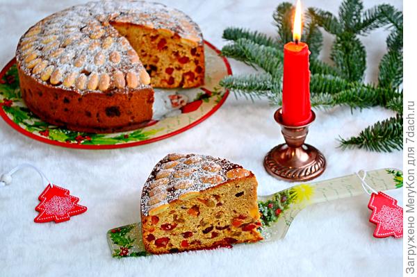 Разрез кекса покажу перед самым Новым годом, заменю главное фото. Перед подачей кекс можно посыпать сахарной пудрой.