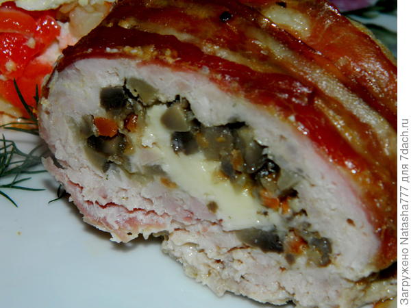 Мясной рулет с грибами в беконе