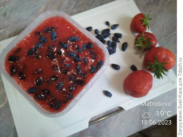 Мы очень любим жимолость, я делаю из нее заготовки на зиму. Особенно любимая вкусняшка — жимолость, замороженная в клубничном пюре. И ещё замораживаю пюре из смеси клубники и жимолости