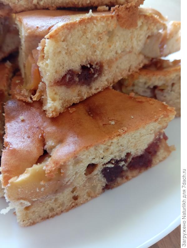 Помещаю пирог в предварительно нагретую до 190°C духовку на 50 минут. Через 50 минут ароматный пирог, пахнущий летом, готов. Переворачиваю пирог на блюдо, даю время остыть, и можно приступать к чаепитию.