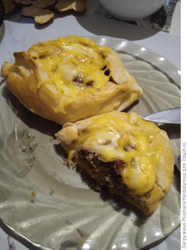 За шутками-прибаутками пирожки были продегустированы… И тут я спохватилась — у меня же конкурс!!! На противне лежали две штучки… Уже под хохот и напутствия лёгкий дороги оставшиеся расстегайчики-путешественники были возвращены домой, сфотографированы для конкурса (благо проблемы с электричеством были уже решены) и… съедены.