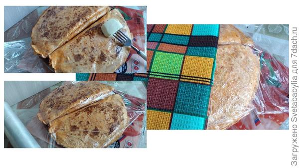 Пожарила на сковороде большую картофельно-кабачковую лепешку. Добавила в нее немного куриной грудки, обжаренной с луком и морковью. Остатки кабачка пригодились. Получилось вкусно.