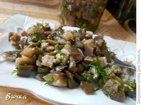 При любом варианте баклажаны за 5-6 часов пребывания в холодильнике пропитываются ароматом и вкусом чеснока, укропа, специй, и через несколько часов «грибочки» можно уже подавать на стол).