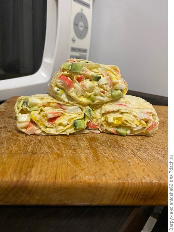Рулеты из лаваша с крабовыми палочками и огурцом. Пошаговый рецепт с фото