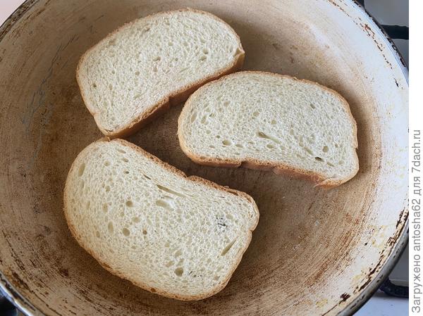 Белый хлеб немного подсушиваем на сухой сковороде.