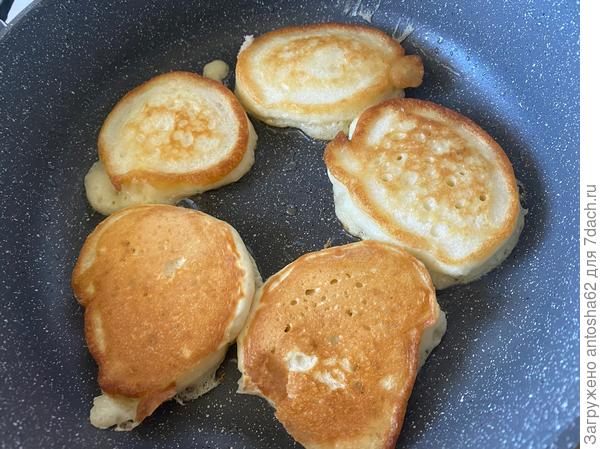 Вот такие оладьи с манго были приготовлены к чаю. Это сытно и, несомненно, очень вкусно! Манго я положила в само тесто, и это придало оладьям интересный вкус.