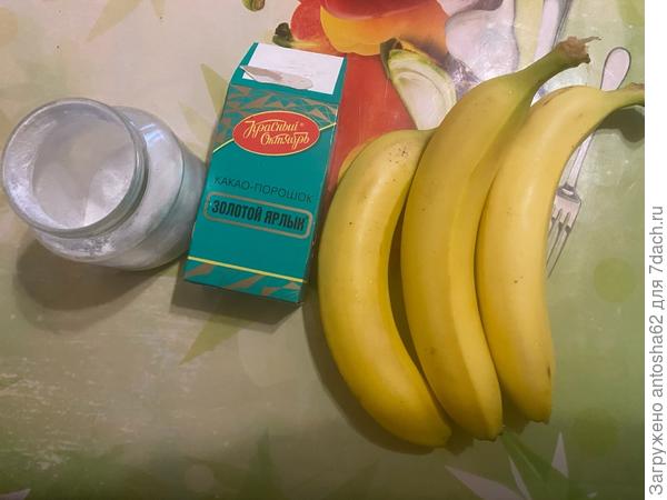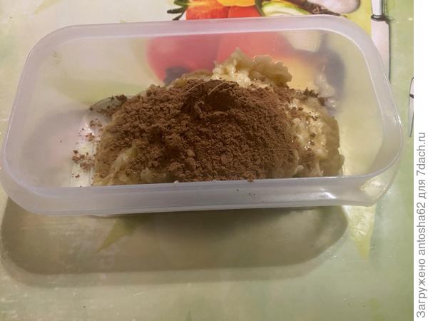 К банановой массе добавляем какао.