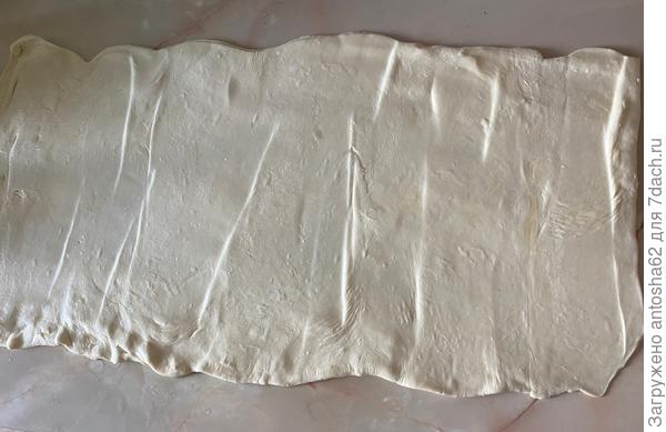 Размороженное тесто раскатываем.