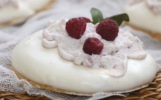 В порционный кремешки выложить слоями меренговый корж, взбитые сливки, ягоды. Сливки можно взбить самостоятельно или использовать готовые из баллона. Ягоды сезонные, можно замороженные.
