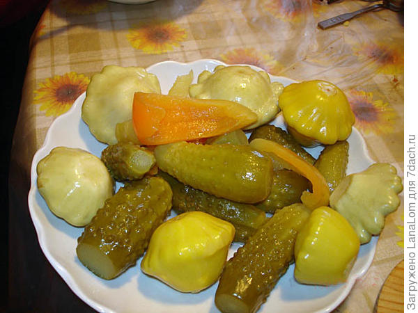 Пошла, открыла свое ассорти — огурцы с овощным физалисом (фото ставить не буду — выглядят как маленькие зеленые помидоры). Как раз их мне сейчас и на хватало!