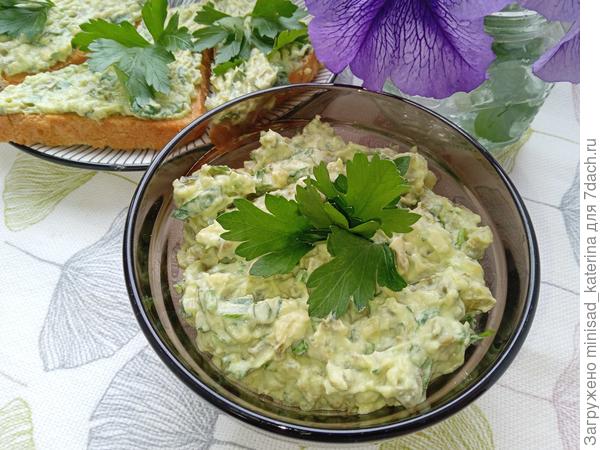 ИнгредиентыТворог — 100 гАвокадо — 0,5 шт.Вяленые томаты — 3-4 шт.Базилик — 2 веточкиСушеный чеснок — щепоткаСоль