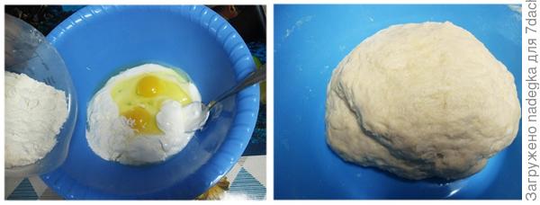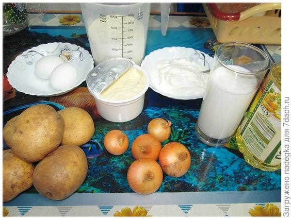 Замесим тесто. Для этого соединим яйца, сметану и муку, добавим соль и масло. Вымешиваем тугое тесто, такое, чтобы можно было раскатать его скалкой. Отставляем его, накрыв полотенцем, на 30-40 минут «отлежаться».В это время готовим начинку. Картофель отвариваем, протираем. Лук репчатый рубим и пассеруем на растительном масле до золотистого цвета (именно хорошенько подрумянить, чтоб чувствовался вкус жареного лука!). Перемешиваем.
