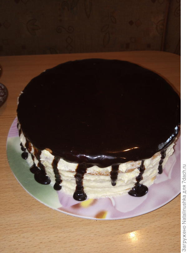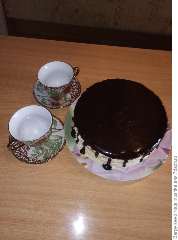 Заливаем верх торта горячей глазурью, украшаем или просто посыпаем орехами.