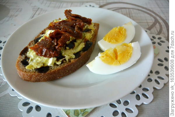 ИнгредиентыБагет - 3 ломтикаШпроты — 3 шт.Соленый огурец — 1 шт.Зеленый лук — 2 пераЕврейская закуска (яйца вареные, плавленый...