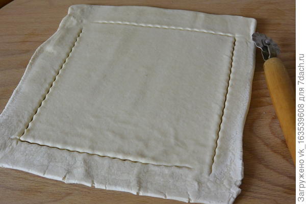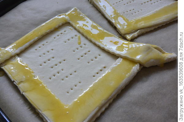 Сложить его и проткнуть вилкой в середине, чтобы тесто не вздулось. Края смазать желтком.