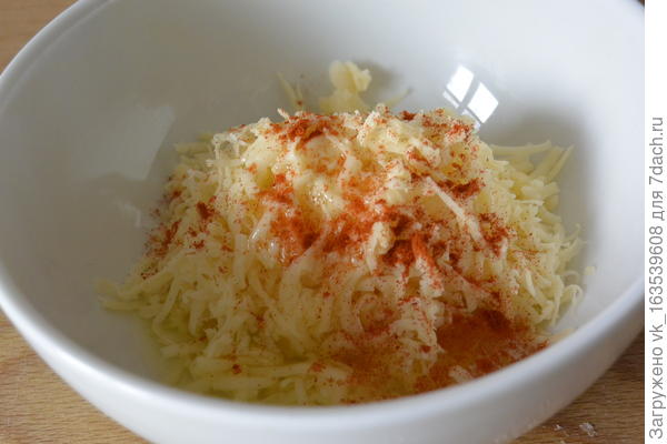 Отправить в разогретую духовку на 15-20 минут. В это время натереть сыр на тёрке и добавить специи.