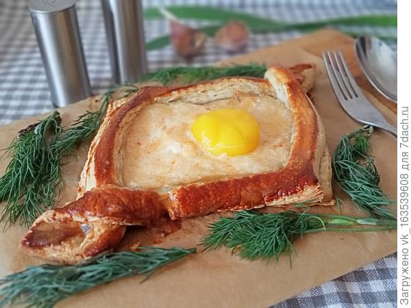 Хачапури по-аджарски из слоеного теста. Пошаговый рецепт приготовления с фото